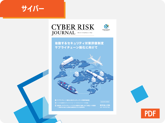 Cyber Risk Journalは東京海上日動火災保険株式会社が発行する、サイバーリスクの最新動向や企業が取り組むべき対策などを紹介する情報誌です。